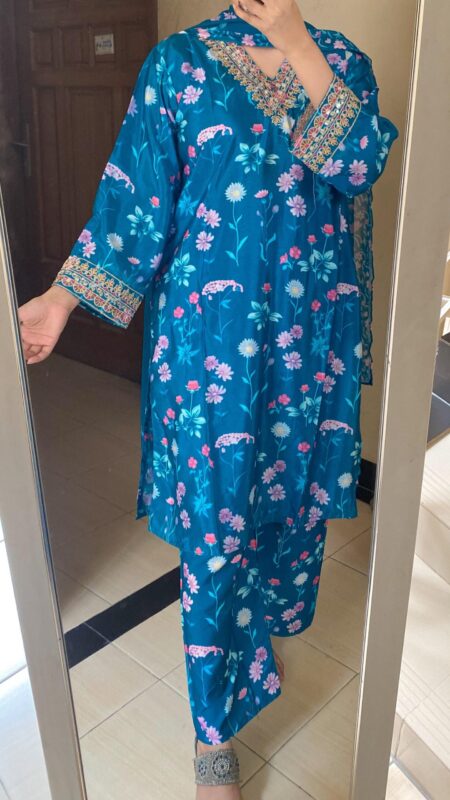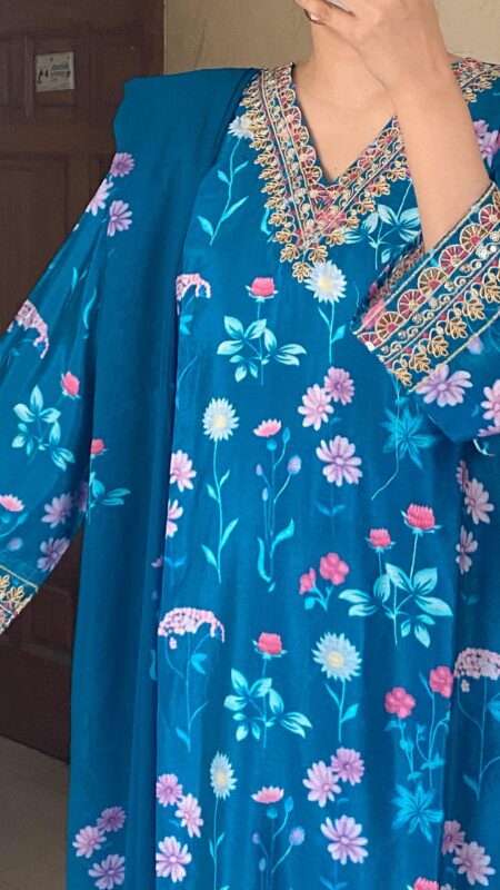 BEAUTIFULLY SEQUINED WORK ON PRINTED SET
